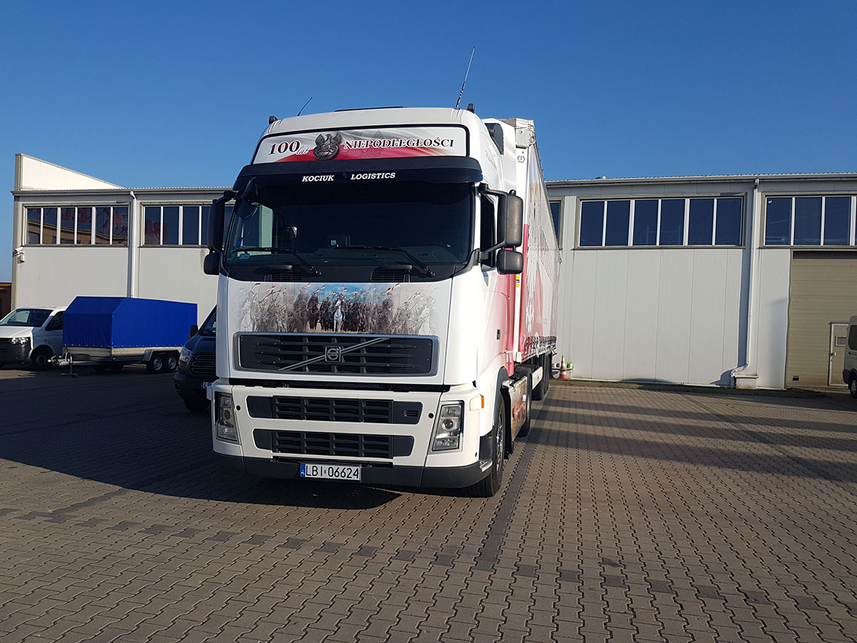 Przewoźnicy, członkowie naszego Związku dla upamiętnienia tej okrągłej rocznicy oraz cieszenia się nią przez Polaków w kraju i zagranicą pomalowali swoje pojazdy w okolicznościowe napisy oraz zamieścili na nich sceny z drogi do niepodległości oraz jej kształtowania po 1918 roku.
