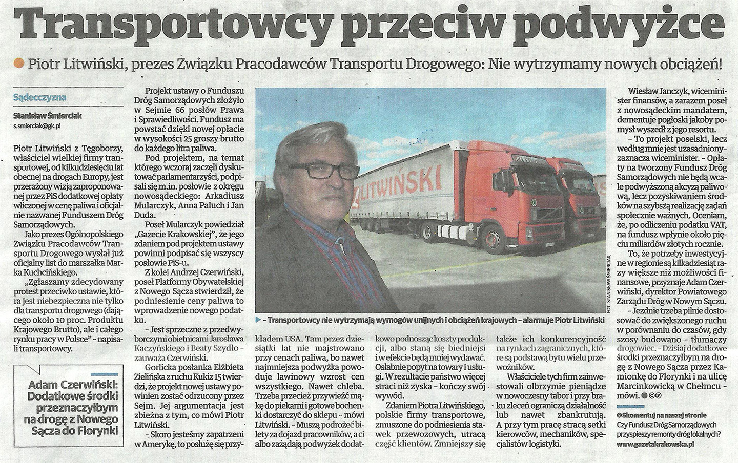 Paliwo jest naszym narzędziem pracy i powinniśmy kupować je na korzystnych zasad. Oczekujemy, że nasz postulat dotyczący zwrotu części akcyzy zostanie wreszcie spełniony co da firmom transportowym impuls do konkurowania na rynkach europejskich w warunkach zmian proponowanych przez Komisję Europejską w "pakiecie mobilności".